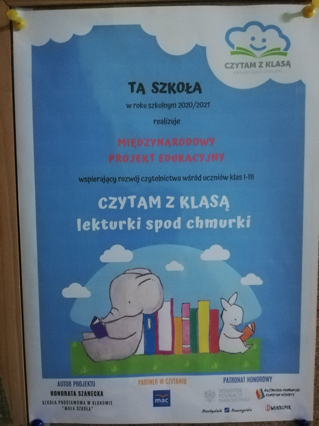 23 września uczniowie z klasy 1,2 i 3 PSP SRW w Polskim Świętowie rozpoczęli realizację Międzynarodowego Projektu Edukacyjnego i innowacji pedagogicznej- „Czytam z klasą – lekturki spod chmurki”. Przewodnia postać po projekcie- mała chmurka Tosia, opowie o nurtujących ją problemach związanych z zanieczyszczeniami środowiska i zachęci do rozwiązania bardzo ważnych problemów natury ekologicznej. Dzieci otrzymały „Lekturniki”, pokolorowały stronę tytułową i podpisały. Pierwszą przygodę Tosia przeżyje w „krainie drzew” i dlatego wybraliśmy do przeczytania książkę Marii Terlikowskiej pt. „Drzewo do samego nieba” i byliśmy w lesie. Co się wydarzy w książce? Dowiemy się podczas następnych spotkań czytelniczych.