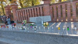 -zapalenie zniczy i złożenie kwiatów na grobie więźniów oświęcimskich.Jest to miejsce Pamięci Narodowej, o które dba
